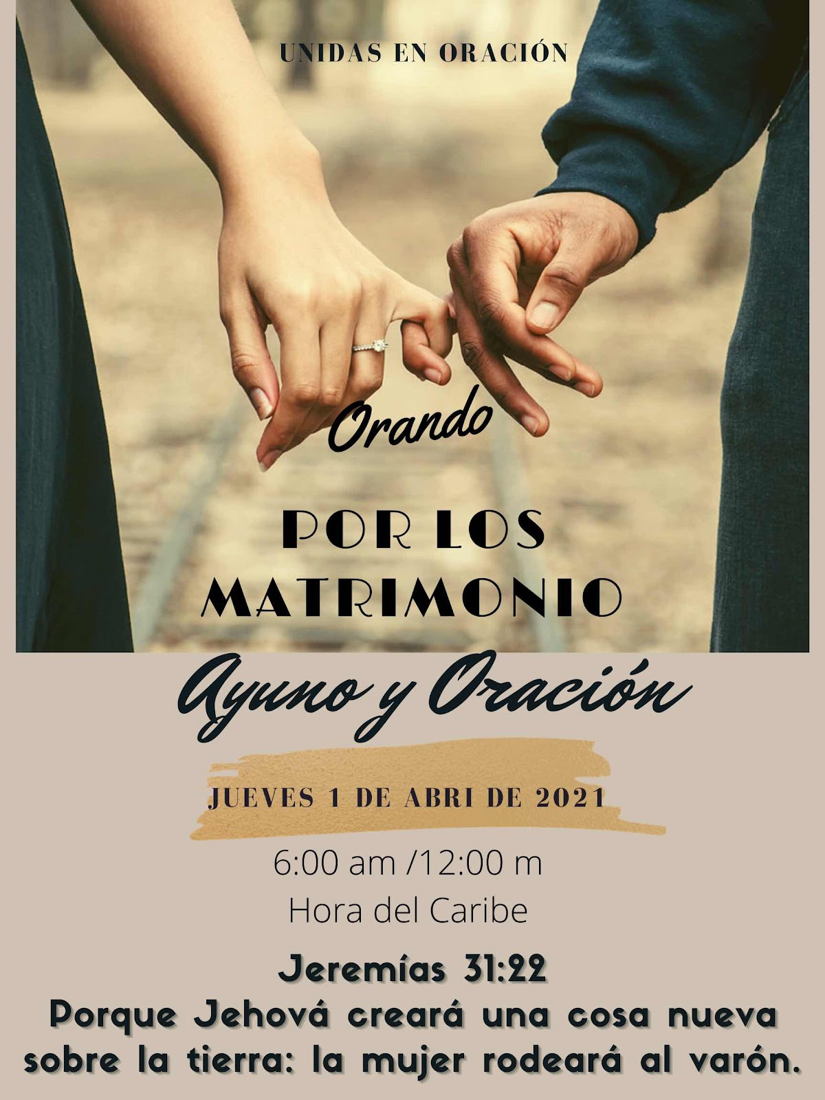 En esta mañana 1 Abril 2021, el grupo de Oración de MALPDJ a presentado ayuno y Oración por los matrimonios. Si tienes una petición por tu matrimonio o algún matrimonio conocido puedes dejar tu petición en el Chat de la APP, la hna. Lourdes estará tomando nota 📝 y pasándola al grupo para asi estar orando por ellas.